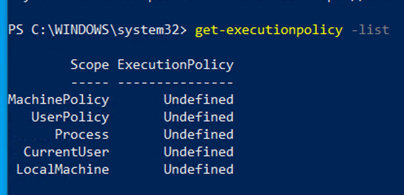 - By default in my windows 10 client machine. Scope of execution policy was set to Undefined. I used
