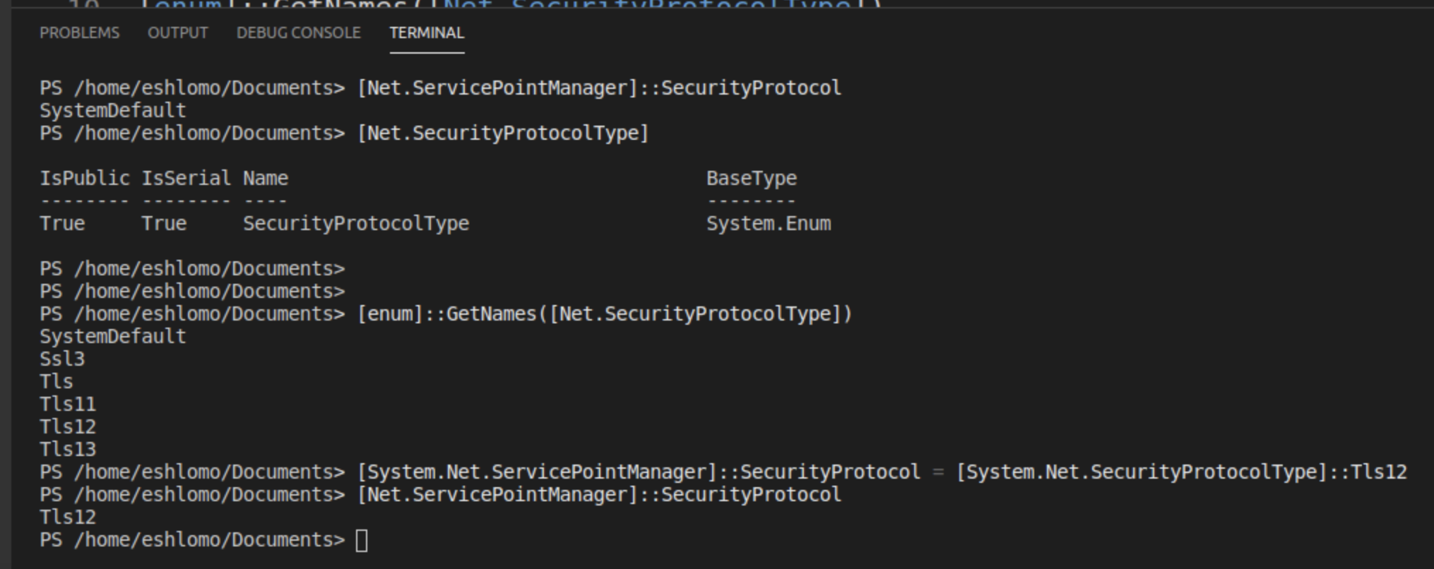 [Net.ServicePointManager]::SecurityProtocol