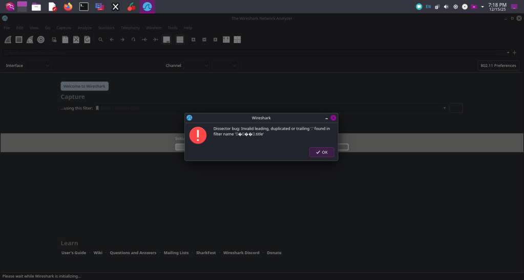 - Corrupted or malformed display filter definitions in Wireshark’s dissector registration files.
